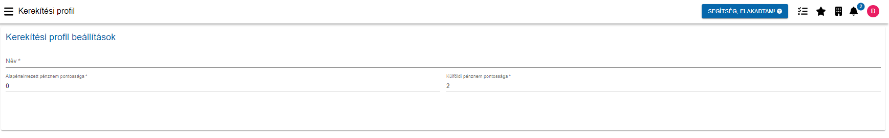 A "Kerekítési profil" célja, hogy maga a számlázási rendszer amikor létrehoz egy számlát akkor hány tizedesjegyre kerekítsen és mely helyeken (pl. részösszegek, végösszegek).