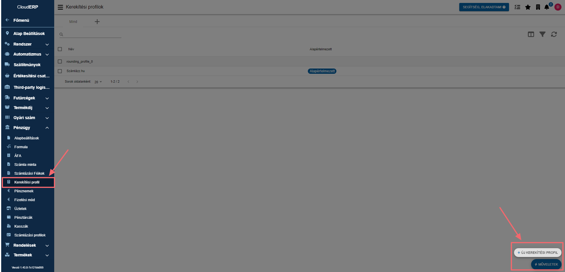 A "Kerekítési profil" létrehozható és beállítható a Beállítások- Pénzügy- Kerekítési profilok menübe.
