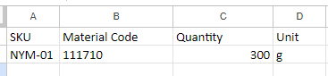 Figyelem! Fontos, hogy az importban a Material code oszlopban található kódok Egyszerű szövegként legyenek formázva, ha számként kerül formázásra az importálás sikertelen lesz. Ebben az esetben az alábbi hibaüzenet jelenik meg: