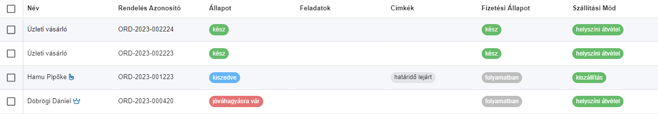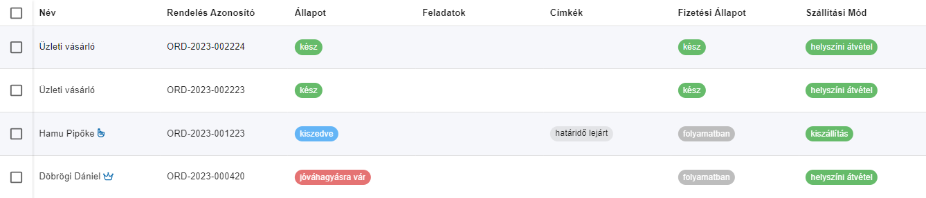 A sor elején található jelölőnégyzet segítségével egy vagy több (akár az összes) rendelést van lehetőségünk kijelölni, továbbá billentyűparancsok segítik a gyorsabb és precízebb kijelöléskezelést.