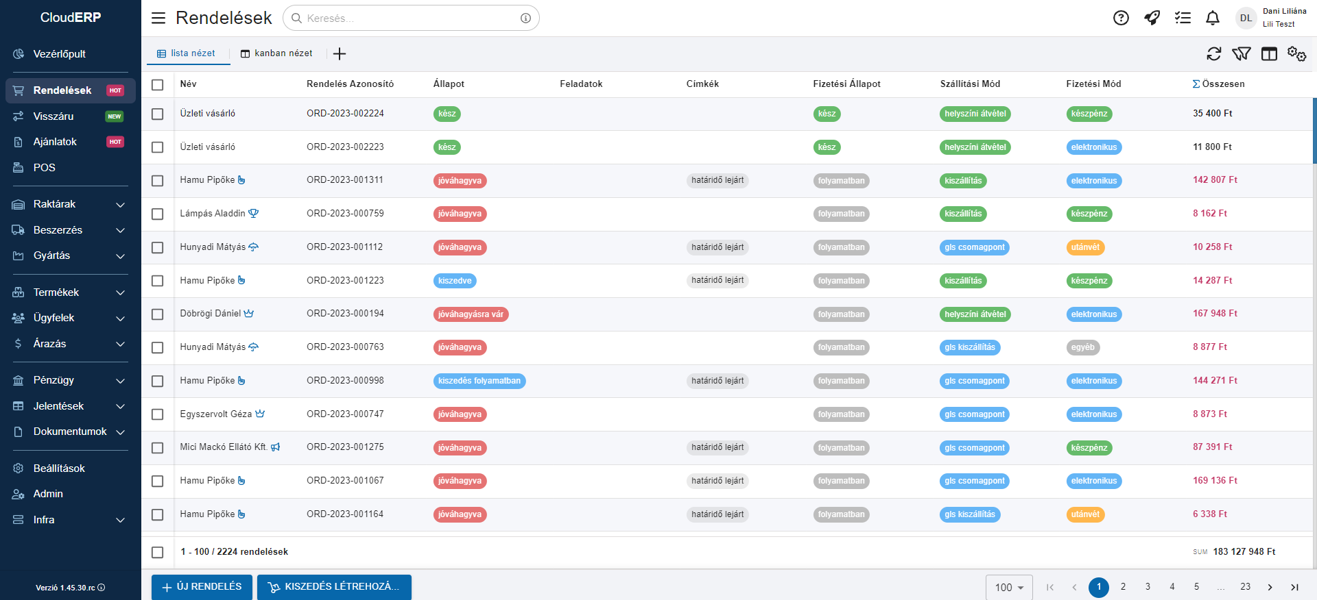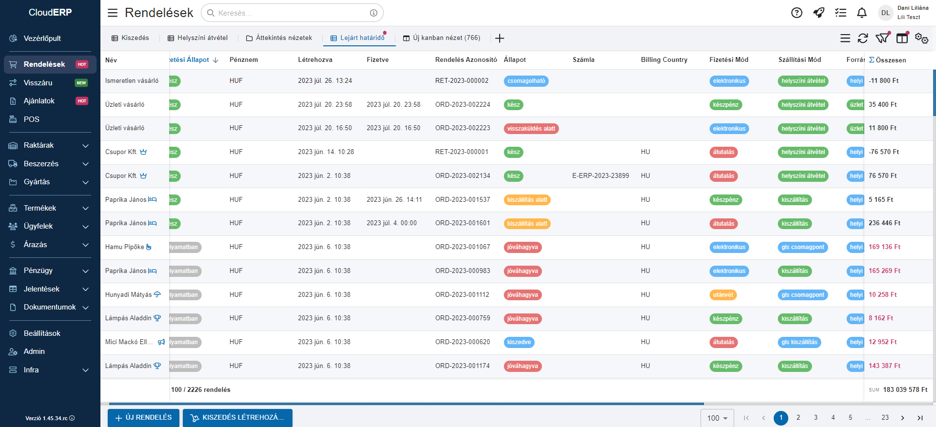 1.45 verziótájékoztató: CloudERP