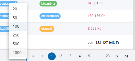 Korábban egy oldalon 10-20-100 elem megjelenítésére volt lehetőség, az új verzióval 20-50-100-250-1000 elem egy oldalon való megjelenítése is támogatott.