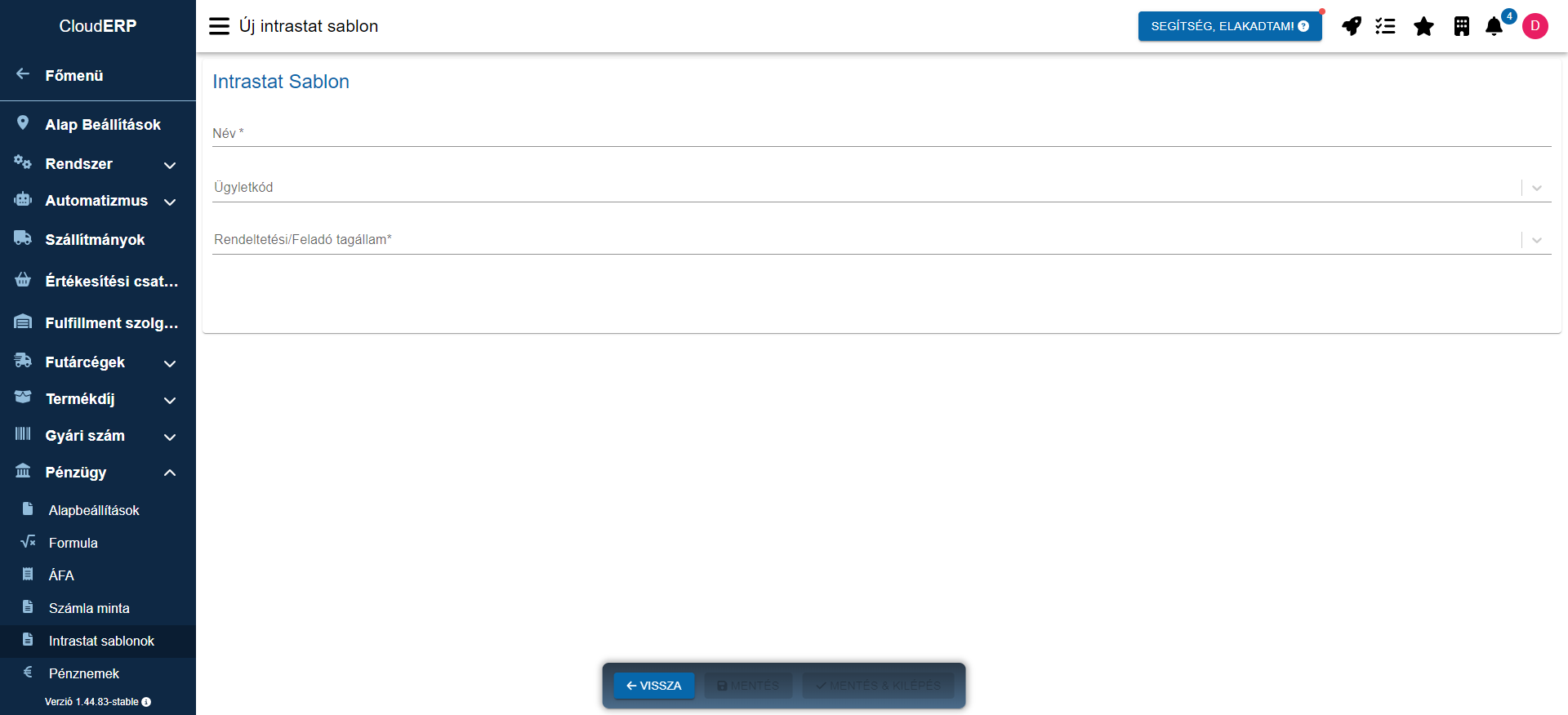 A sablonok a Beállítások/Pénzügy/Intrastat sablonok menüben rögzíthetőek.