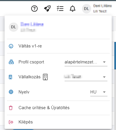 A korábbi verzióban a profil csoport és cég váltására is külön ikon állt rendelkezésre a CloudERP fejlécében.