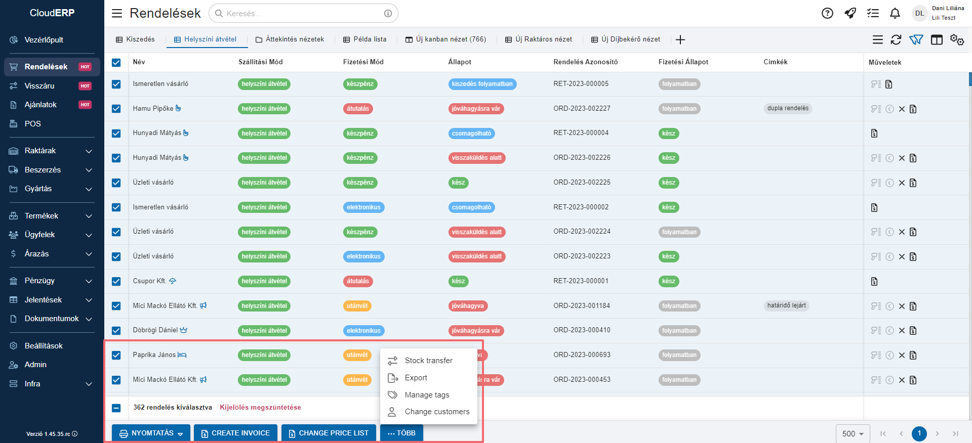 Ezek után ugyan úgy tudunk dolgozni a visszáru rendelésekkel és műveleteket végrehajtani vele.