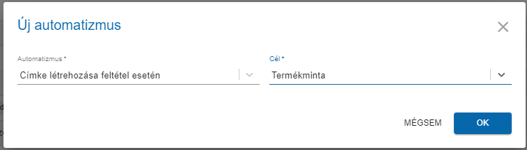 A Beállítások -> Automatizmus -> Automatizmus menüben létrehozzuk az új automatizmust, amelynek típusa "Címke létrehozása feltétel esetén" és a Cél pedig az a címke, amit létrehoztunk.