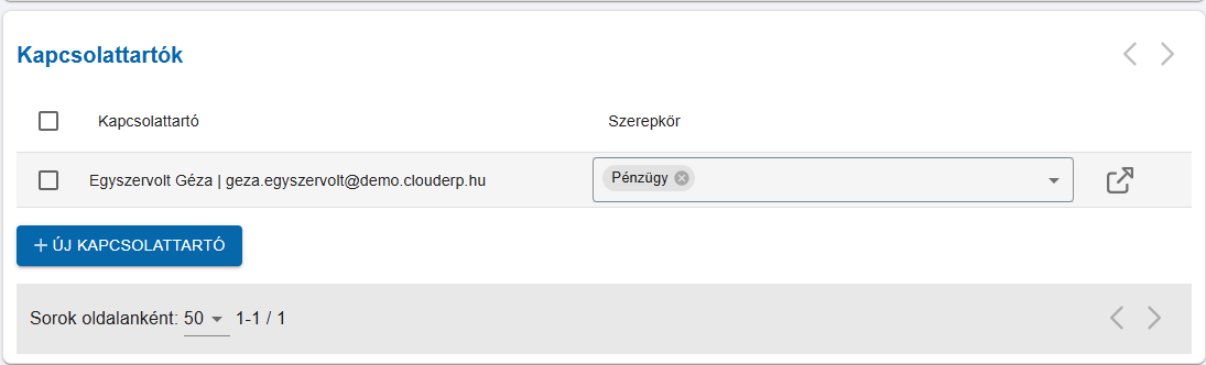 Új kapcsolattartót a cégen a Kapcsolattartók részben tudunk hozzáadni, a hozzáadott személyen rögzített e-mail címre fog kiküldésre kerülni az e-mail