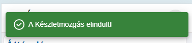 Ha rákattintunk az Áttárolás gombra, akkor ha sikeres volt az áttárolás arról egy üzenetet fogunk látni és ekkor a háttérben megtörténik a termékek mozgatása a raktárműveleteken és ismét az áttárolás felületet fogjuk látni, csak üresen. Így újra tudjuk kezdeni a folyamatot és újra át tudunk tárolni egy újabb terméket.