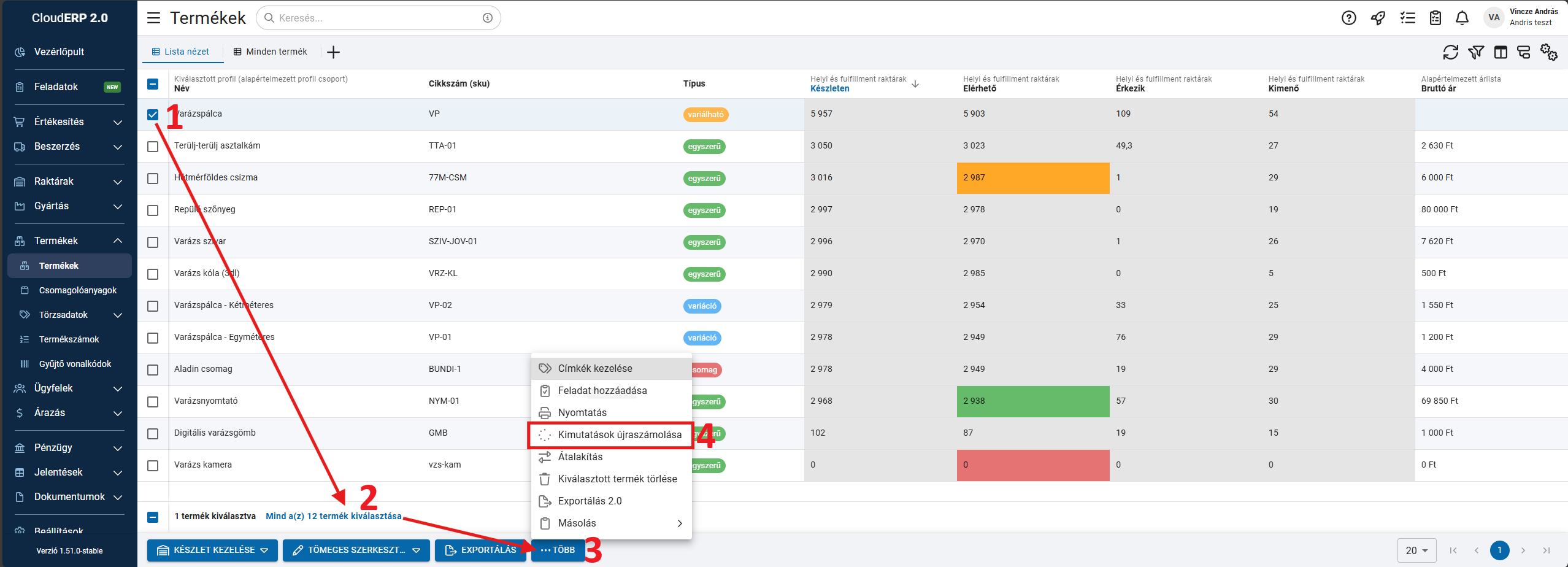 - Ha minden termék statisztikáját szeretnénk újraszámoltatni, akkor válaszzuk a "Mind az x termék kiválásztása" -t ki. Ha csak egy-egy termékét szeretnénk, akkor ezt a lépést hagyjuk ki