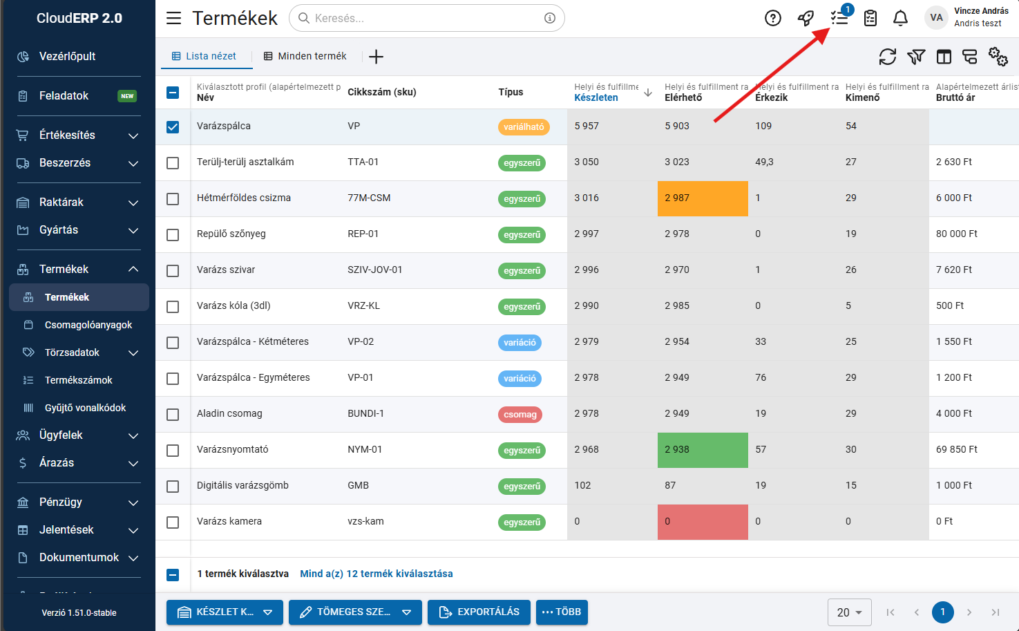 - Jelöljük ki a terméket, ez lehet egy vagy akár több is