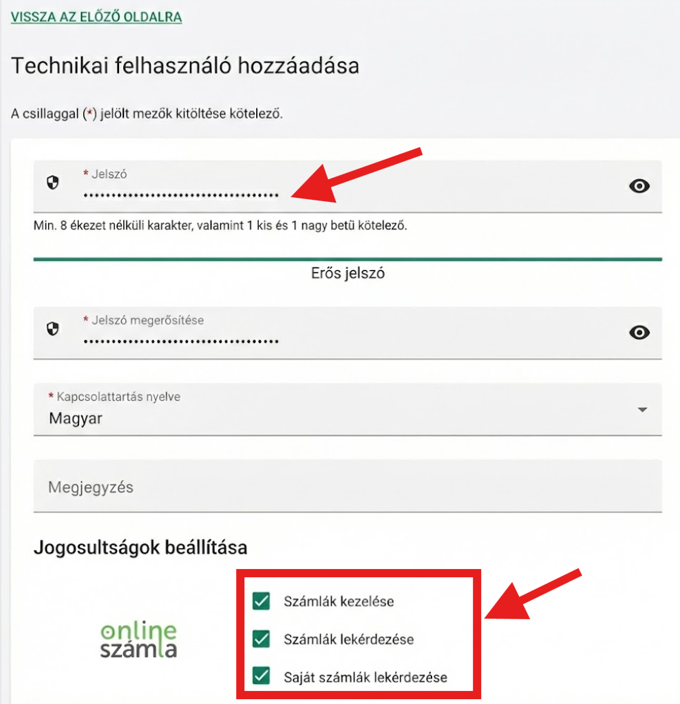 Előfeltétel: Technikai felhasználó létrehozása NAV Online Számla rendszerben