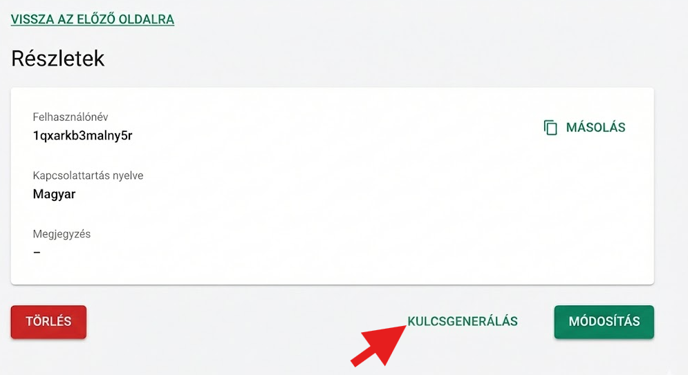 A megjelenő oldalon kattints a “Kulcsgenerálás” gombra! Ezzel létrehozod az XML aláíró és cserekulcsot.