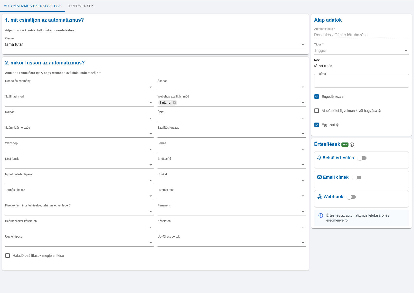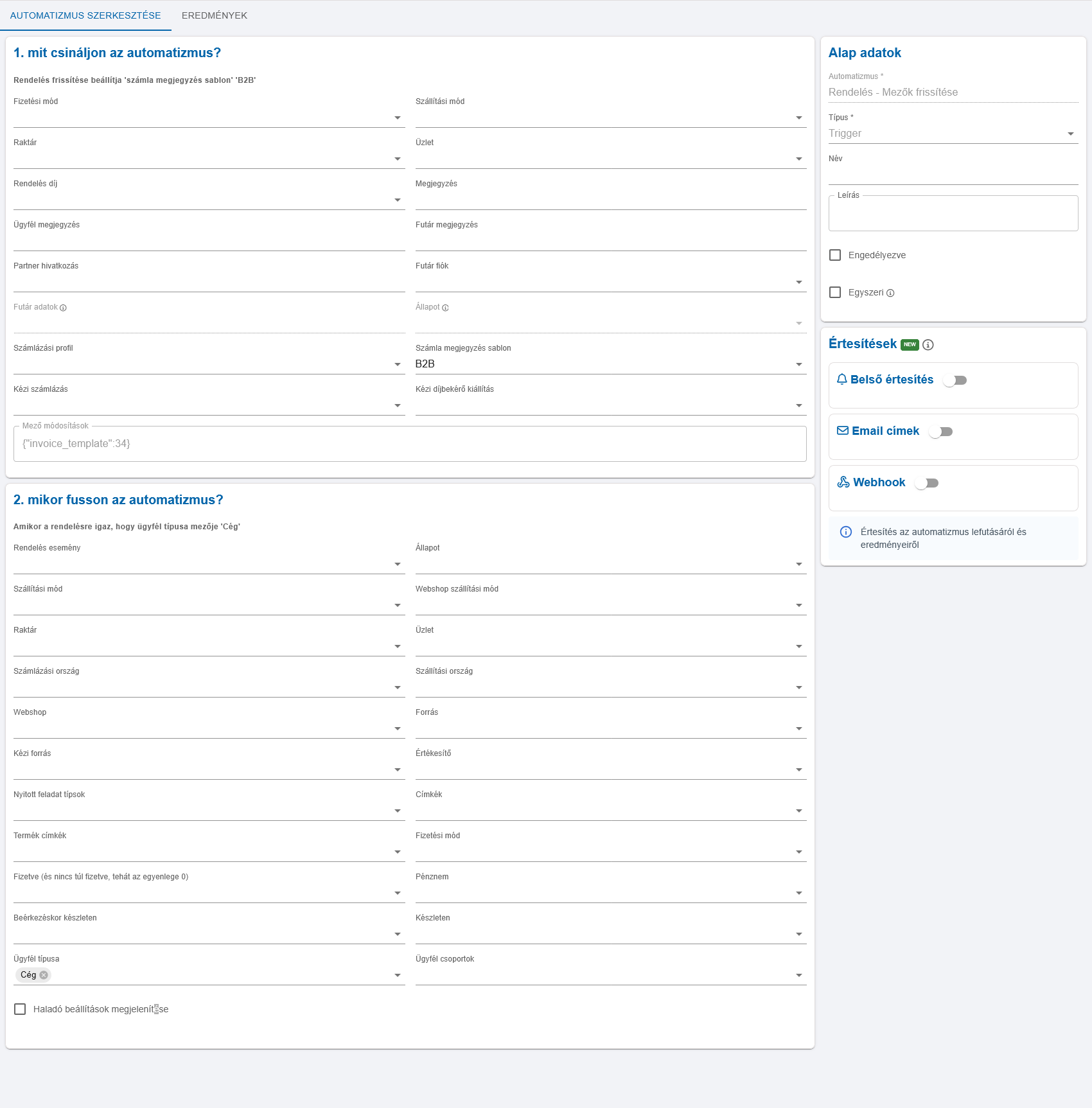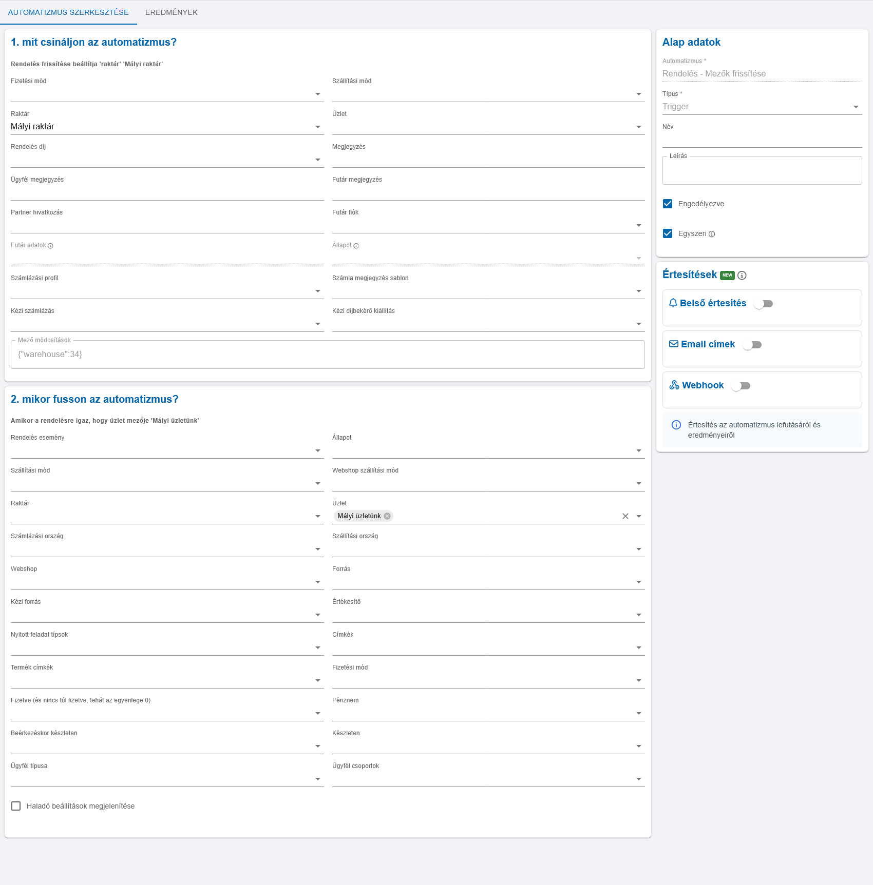 Ezek az automatizmusok arra valók, hogy bizonyos adatokat frissítsünk a rendeléseken akkor, amikor valamely feltétel teljesül.