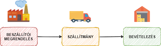 A beszerzési folyamat során egy vagy több már korábban felvitt terméket rendelünk meg egy külső beszállítótól és érkeztetjük be a raktárba.