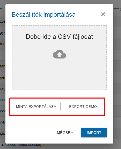 Beszállítói adatok importálása