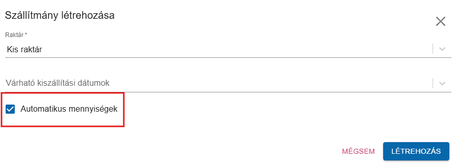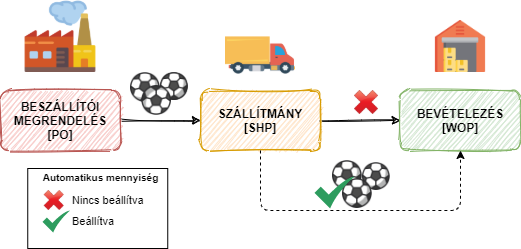 | Automatikus mennyiségek | Szállítmány | Raktári bevételezés |