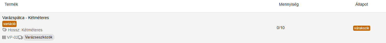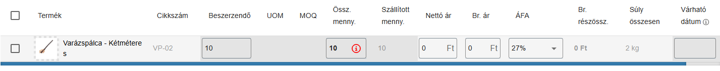 Ez által a beszállítói rendelés folyamatban(Részlegesen beérkezett) állapotba kerül és újból készíthető szállítmány hozzá