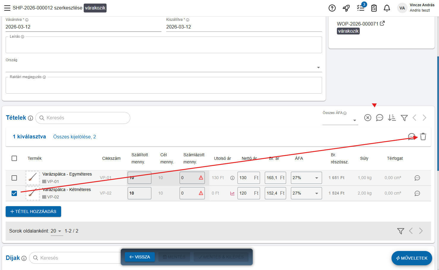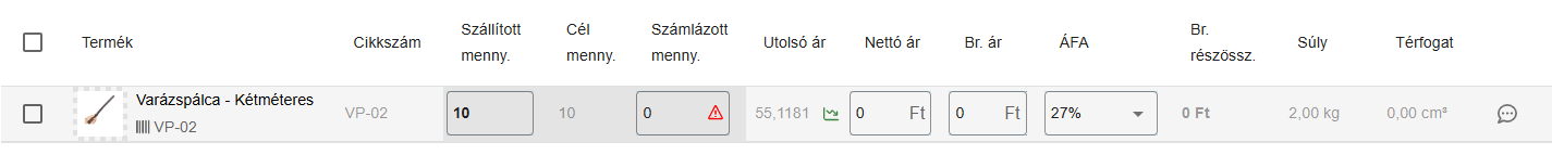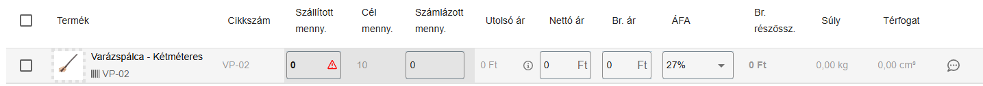 Ha már létrehoztuk a szállítmányt a beszállítói rendelésből, viszont van olyan tétel ami mégse jött meg, akkor töröljük azt a terméket a szállítmányból