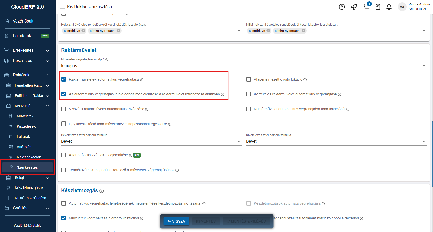 Az automata raktárművelet raktár szinten szabályozható. Minden raktárban megadhatod, hogyan viselkedjen a kiszedésnél a raktárművelet.