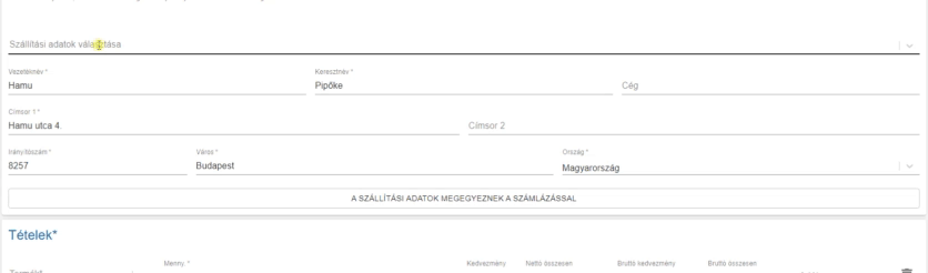 - egy választó listában ki tudsz választani más szállítási címet és a rendszer az alapján tölti ki a számlázási adatokat