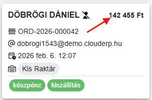A tranzakciós egyenleg állapota a rendelés nézetekben is látható