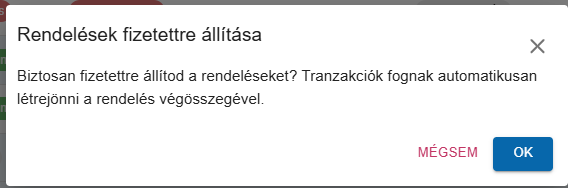 A rendeléseket kijelölve válasszuk a Több -> Rendelések fizetettre állítása műveletet.