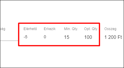 Rendelt mennyiség | Nincs automatikus kitöltés | |
