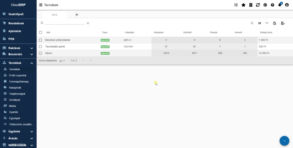 A beszerzést elindíthatod a termék oldalról, ha kijelölsz egy vagy több terméket és a jobb felső sarokban található BESZERZÉS gombot megnyomod.