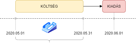 Kifiztetés: 2020.06.01 (kiadás) Időszak: 2020.05.01-05.31 (költség). Ebben az esetben a költségből kiadás lett, ugyanis később fizetted ki, mint ahogy a költség jelentkezett. Hasonlóan viselkedik a munkabér is, mivel általában utólag, az elvégzett munka után fizetik.