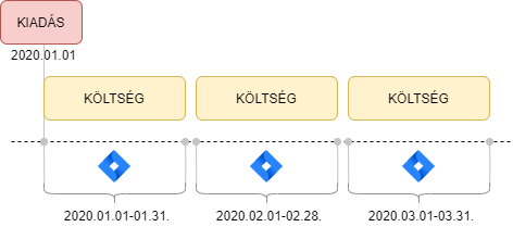 A kiadás és a költség felmerülés időpontja legtöbb eseteben egybeesik, de mint látható előfordul hogy időben megelőzik egymást.