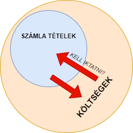 A költségek és a számla tételei. Vannak költségek, amelyek egyáltalán nem szerepelnek számlákon (pl. banki költségek, kamatok). De a számla tételei mindig költségek, mivel azokat idővel rendezni kell.