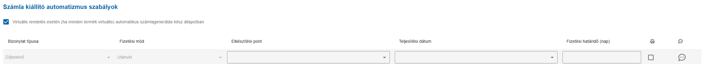- Előleg fizetés teljesítve: akkor készül a bizonylat, amikor egy rendelés előlege kifizetése kerül