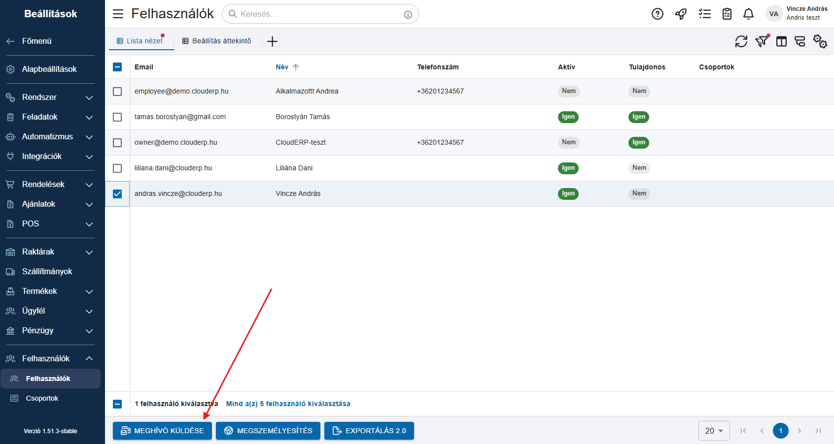 Jelölj ki egy vag több felhasználót és nyomd meg a "Meghívó küldése" gombot