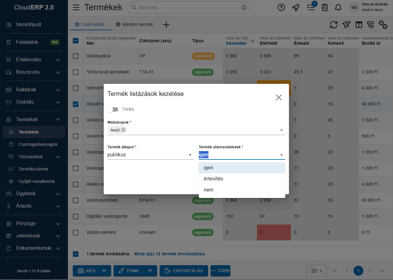 Termék szinten beállítható, hogy melyik utánrendelhető, és melyik nem