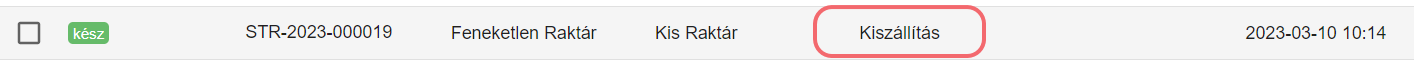 Ha bepipálva hagyjuk és az OK gombbal létrehozzuk a készletmozgást, ez azt eredményezi, hogy automatikusan létrejön a rendelés készletmozgása Kiszállítás szállítási móddal és kész állapotba kerül, automatikusan végrehajtásra kerül egy kivételezési és egy bevételezési raktárművelet is.