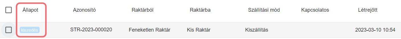 Ha nem pipáljuk be és az OK gombbal létrehozzuk a készletmozgást, akkor létrejön a Készletmozgás, és az állapota Kiszedve állapotot vesz fel.