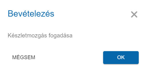 A Bevételezés felugró ablakban válasszuk az OK gombot.