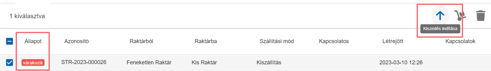 Továbbá létrejön egy kivételezési raktárművelet, amely várakozik állapotot kap.